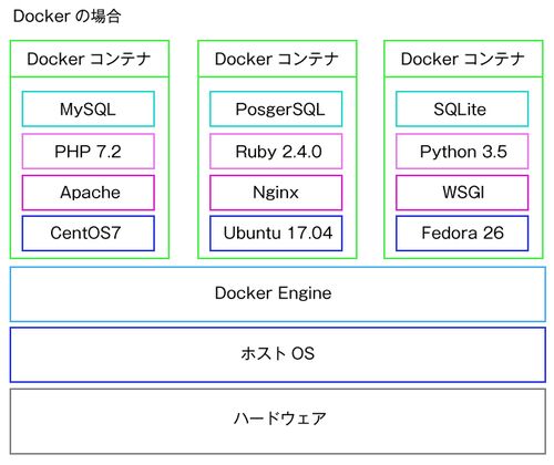 Dockerとは dotCloud社(現Docker社)が開発し、2013年にオープンソースのプロジェクトとして公開。軽量なコンテナ型の仮想化環境。Linuxカーネルにおける「libcontainer」と呼ばれるLinuxコンテナ技術とaufsのような特殊なファイルシステムを利用してコンテ…