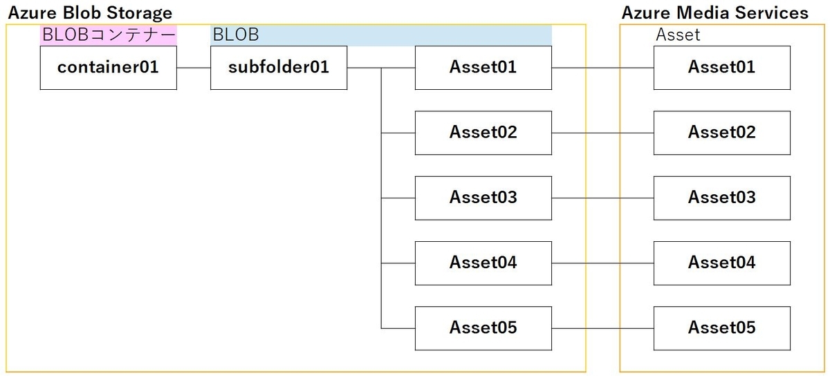 ⇧ 上図みたいに、AssetとBLOBコンテナーが1対1になってないといけないとしたら、もう仕様がいけてないとしか思えないんだが...