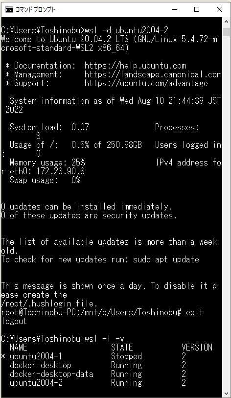 WSL 2(Windows Subsystem for Linux 2)の複数インスタンスの同時稼働はできない...