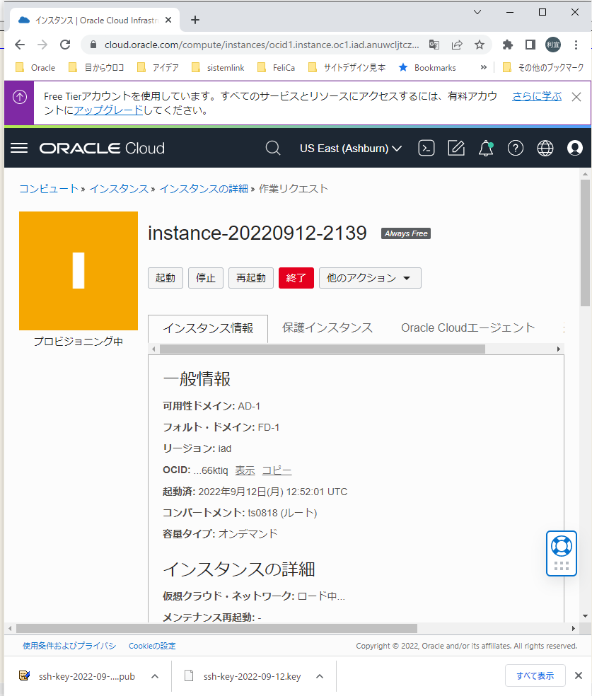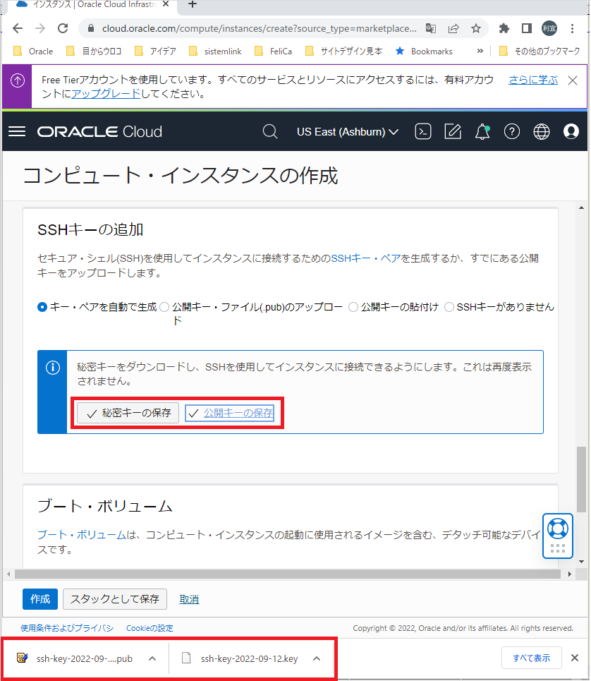 これから作成する仮想マシンにSSH接続するためのキーをダウンロードしておきます。