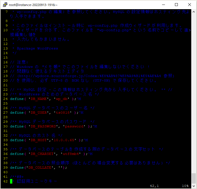 DB_HOSTも、localhostから、仮想マシンのプライベートIPアドレスに変更してます。