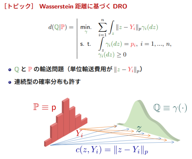 『ワッサースタイン距離は距離公理を満たす最適輸送の特殊ケース』ってことらしいので、「ワッサースタイン距離」以外にも様々な距離関数で「最適輸送」に合致するケースが考えられるってことなんだろうか。