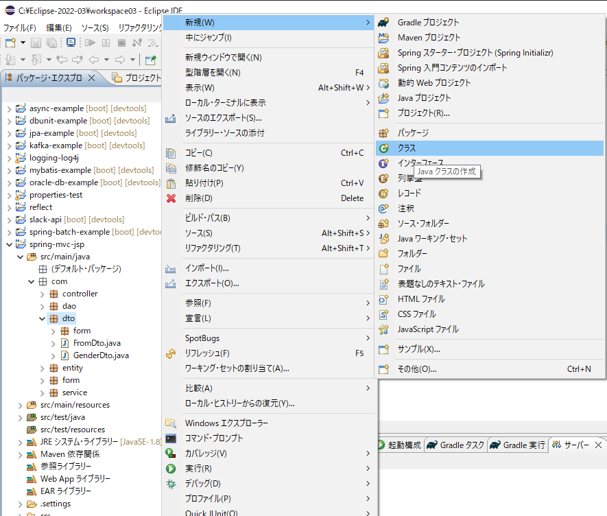 Eclipseで「Maven プロジェクト」とか作成しているとして、適当にクラスを作成します。
