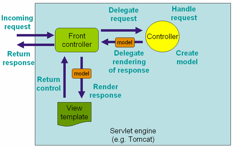 Spring MVC, as many other web frameworks, is designed around the front controller pattern where a central Servlet, the DispatcherServlet, provides a shared algorithm for request processing, while actual work is performed by configurable delegate components. This model is flexible and supports diverse workflows.