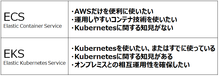 「Amazon Elastic Kubernetes Service (Amazon EKS) 」と「Amazon Elastic Container Service (Amazon ECS)」のどちらにしろ、