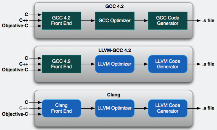 ⇧ なるほど、GCCの切り出しが困難なため、LLVMのフロントエンド部分としてClangを作らざるを得なかったということですか。