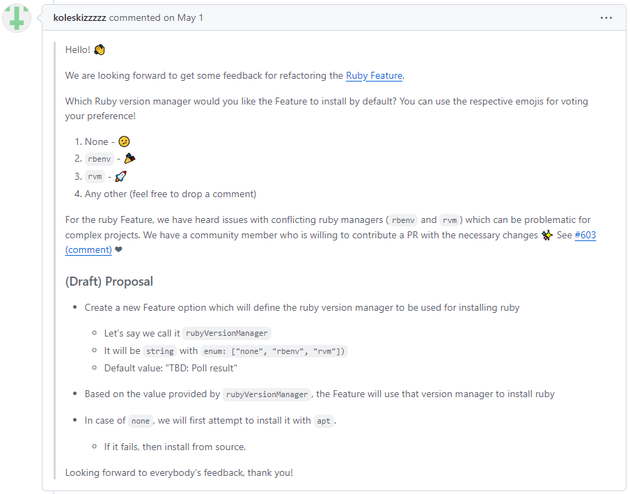 ⇧「devconatiners」におけるRubyのインストールについて、Rubyのバージョン管理ツールとしての選択肢の候補で上がっているものが、
