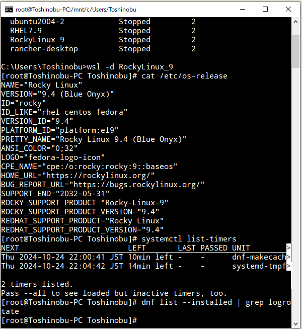 Rockey Linux 9系はというと、