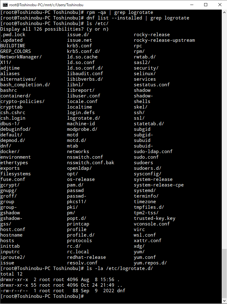 ⇧ インストールされていないようなのだけど、設定ファイルの配置場所っぽい「/etc/logrotate.d/」だけは用意されているという罠過ぎる...