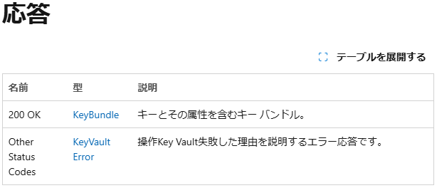 まぁ、何が言いたいかと言うと、「Azure Key Vault」の「REST API」で「エラー応答」を返すんであれば、「エラー応答」に使い物になる情報を持たせて欲しいし、ドキュメントで「原因」を載せてくれるのであれば、「原因」を解消するための「解決方法」について記載されたページの参照先のリンクを載せて欲しいということですな。