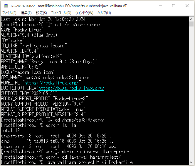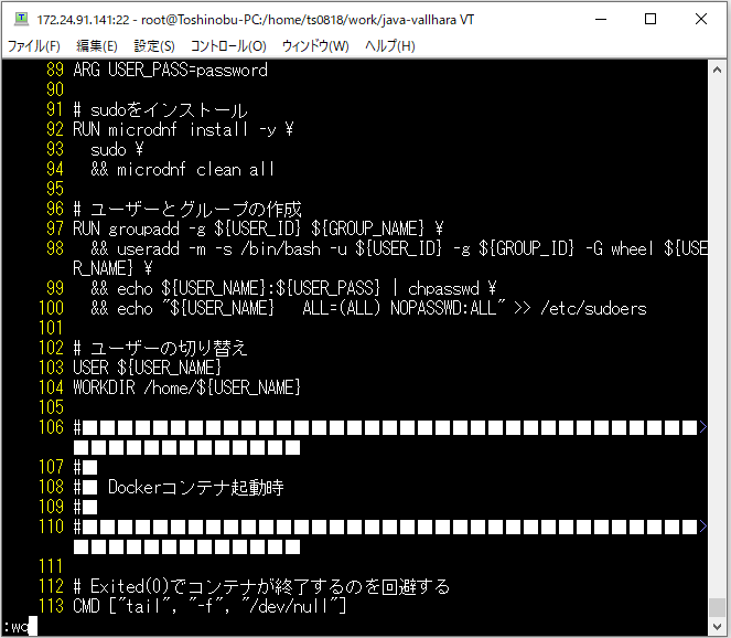 ⇧ のような感じで「Dockerfile」を、「Linux」環境に作成・配置します。