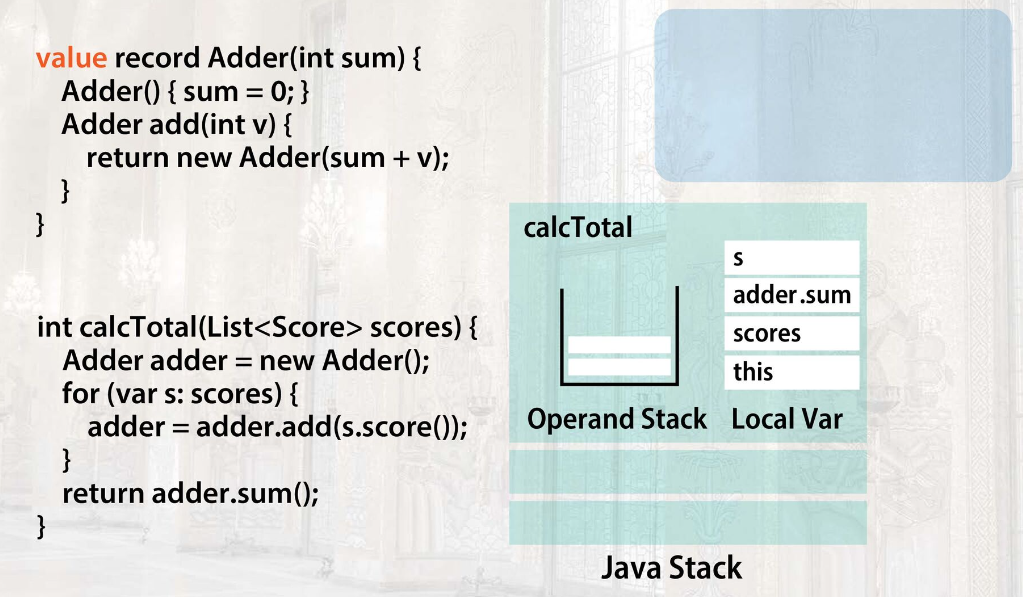 ⇧上図の「non Value Class(従来のクラス)」で言うところの「Adder」のオブジェクトが配置されている、所謂「Heap領域」を利用させたくないってことみたい。