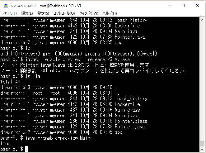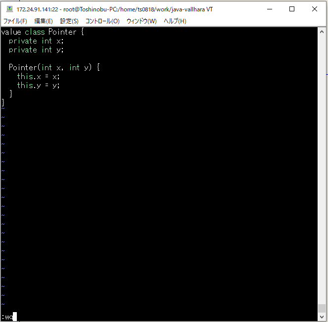 とりあえず、「Pointer.java」と「Main.java」を作成する。ファイルの「所有ユーザー」「所有グループ」は、「javac」「java」「jshell」などを実行するユーザーに合わせておかないとエラーになるので要注意。