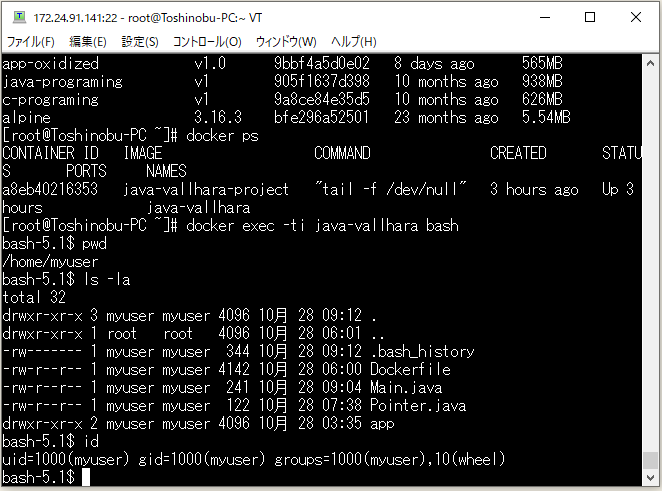 docker exec -ti [コンテナ名] bash