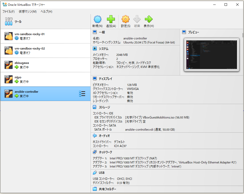 で、対象のホストについても「仮想マシン(VM:Virtual Machine)」が稼働しているのを確認してから、