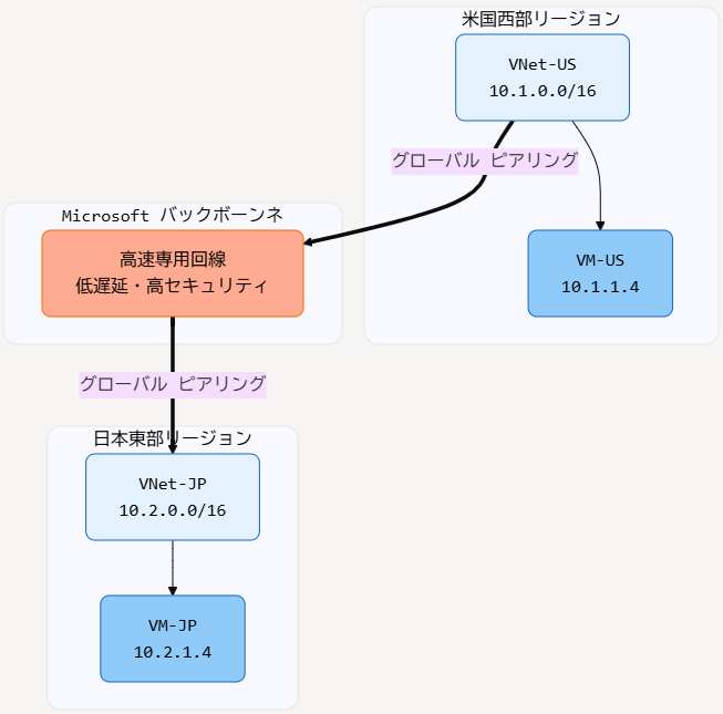 | 2 | グローバル VNetピアリング | - リージョン間接続 - Microsoftバックボーンネットワーク使用 - ゲートウェイ不要 |