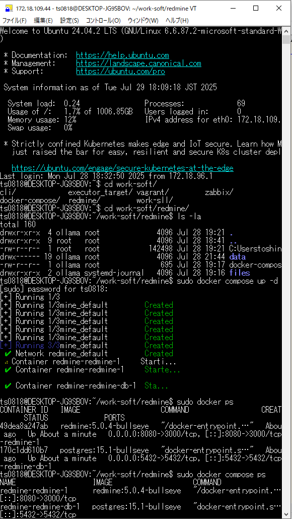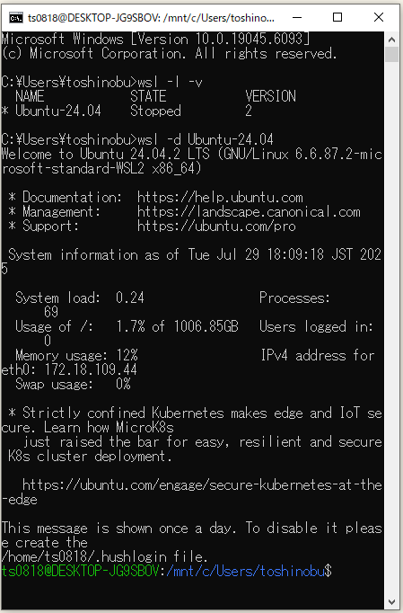 「WSL 2(Windows Subsystem for Linux 2)」にインストールした「Ubuntu 24.04 LTS」を起動して、