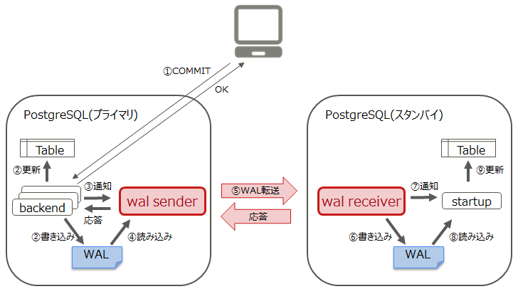 については、同じ意味として捉えることにするとして、「PostgreSQL」の「ストリーミングレプリケーション」において、
